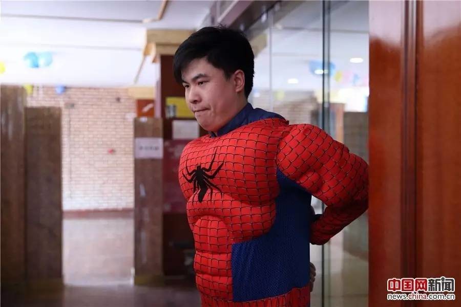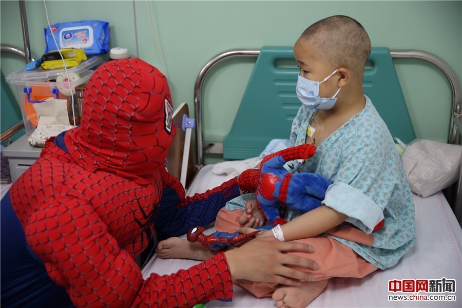 2017年5月26日,北京首都儿科研究所,男护士季长绪扮演的“蜘蛛侠”和众“动漫英雄”与医院住院患儿一起演出。天佑因治疗难受,没法到活动现场,这让准备给天佑一个惊喜的季长绪感到很遗憾。