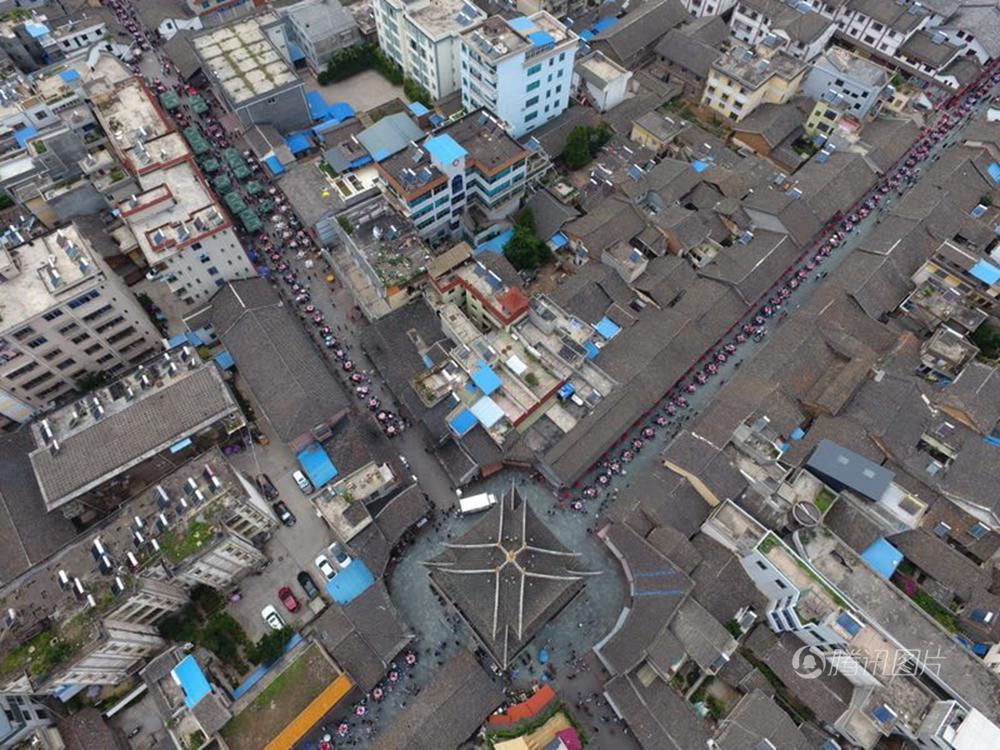 会理县位于凉山彝族自治州正南端,处于攀西资源开发区腹心,为古丝绸路必经要塞,素有“川滇锁钥”之称,至今有2000多年历史,是国家历史文化名城。图为万人宴航拍。