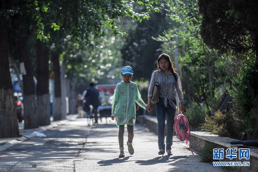 原沈阳军区总医院放射诊断科主管技师张兵(右)接女儿放学回家(5月19日摄)。新华社记者 潘昱龙 摄