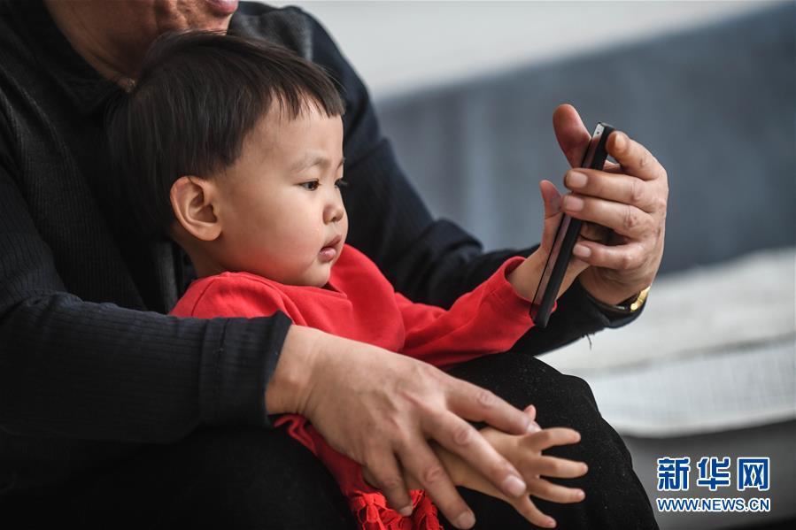 原沈阳军区总医院放射诊断科技师周姝的女儿与母亲视频(3月6日摄)。新华社记者 潘昱龙 摄