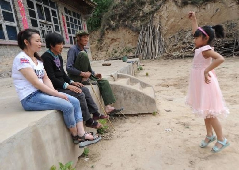 “六一”前夕,爷爷奶奶问她想要什么礼物,美艳含泪告诉奶奶,“什么都不要,只想见妈妈一面!”听着孙女的请求,老人泣不成声。当地“人人来”爱心社的志愿者听说了美艳的事,决定帮孩子完成这个心愿。小长假连着“六一”,是在饭店当服务员的妈妈最忙的时候。但在志愿者的协调和帮助下,妈妈最终请了2天假。可是因为路途远,需要转两次车,在家只能待半天。图为美艳表演起在学校排练的节目。