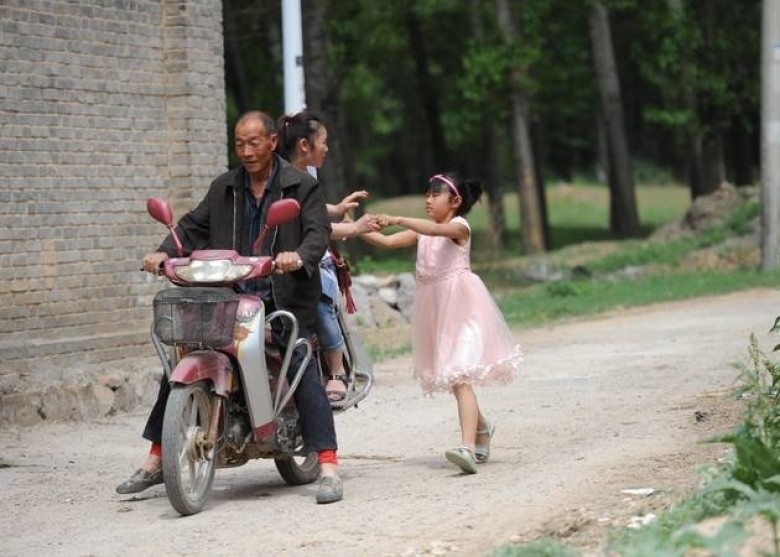 摩托车来后妈妈上车,美艳依然不肯放开小手。骑摩托的大爷都心疼得一而再、再而三地放慢车速,不忍离去。最后,摩托车开始加速,美艳一直追着车跑,边跑边喊“妈妈,别走”。