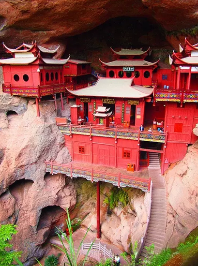 甘露寺恰到好处地镶嵌在岩洞之中,屋顶无需用片瓦。
