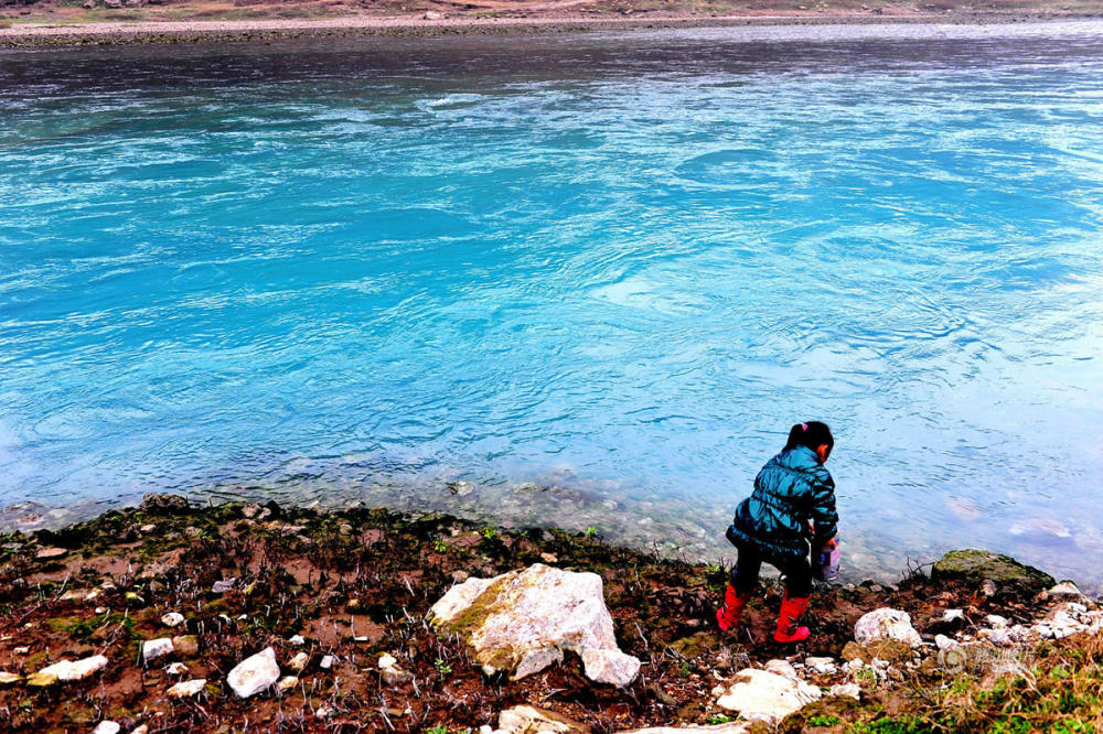 2011年2月24日,一位小朋友在受污染的江边玩耍。贵州乌江镇河段被严重污染。视觉中国