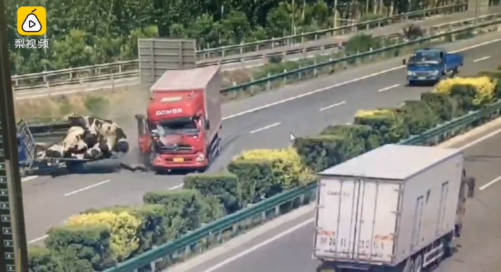 河北廊坊:货运车猛怼奶牛车 奶牛摔一地