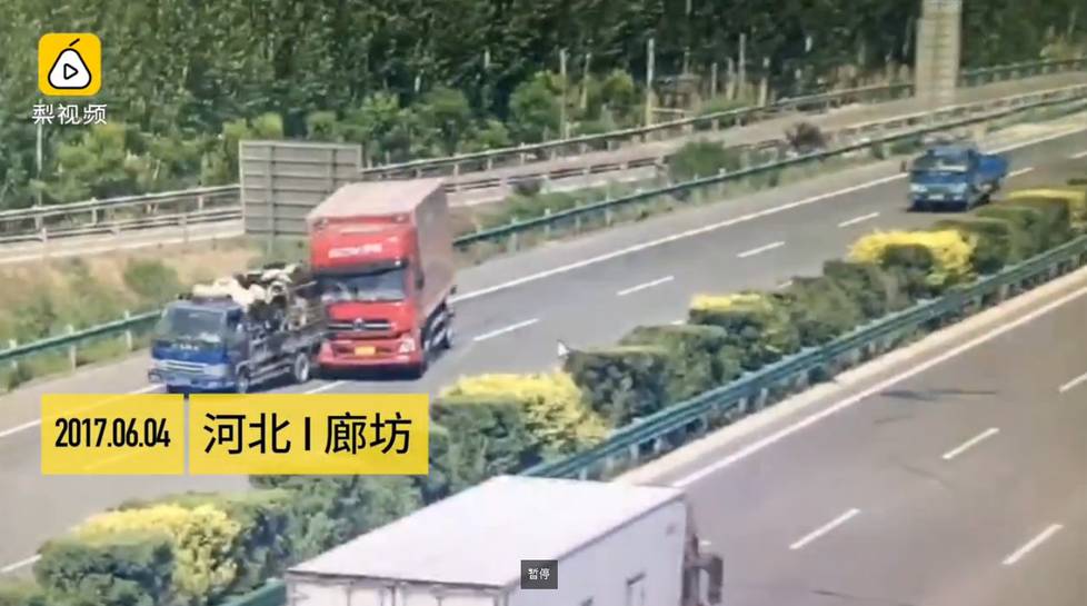 河北廊坊:货运车猛怼奶牛车 奶牛摔一地