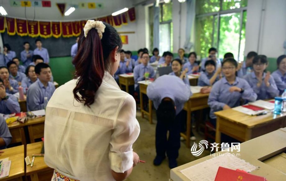 上完今天这堂课,预示着他们正式毕业。未来再相见,也许要等上许久。老师陪伴了同学们三年,毕业离校之前,深深鞠上一躬,以谢恩师三年培育之情。图为高三3班学生向班主任刘婷婷鞠躬,以谢恩师。齐鲁网记者张伟 李怡静 张煜晴 摄