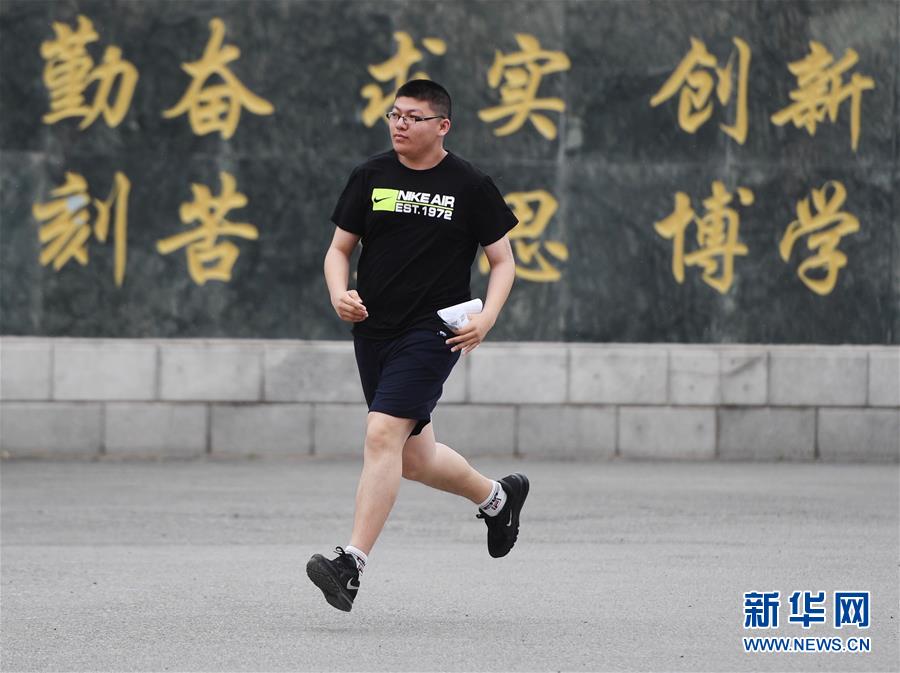 6月6日,在吉林长春第二实验中学考点,一位前来查看考场的考生跑向考场。当日,记者从教育部获悉,2017年全国统一高考将于6月7日至8日进行,部分省(区、市)由于考试科目设置不同,9日仍安排有考试科目。今年全国高考报名考生共940万人。新华社记者张楠 摄