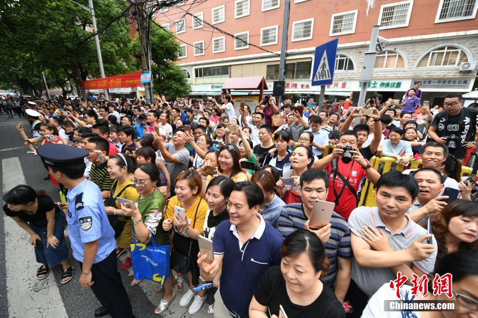 6月8日下午,2017普通高校全国招生统考(湖南)结束,众多家长在长沙市一中考点外拍摄考生走出考场。中新社记者 杨华峰摄