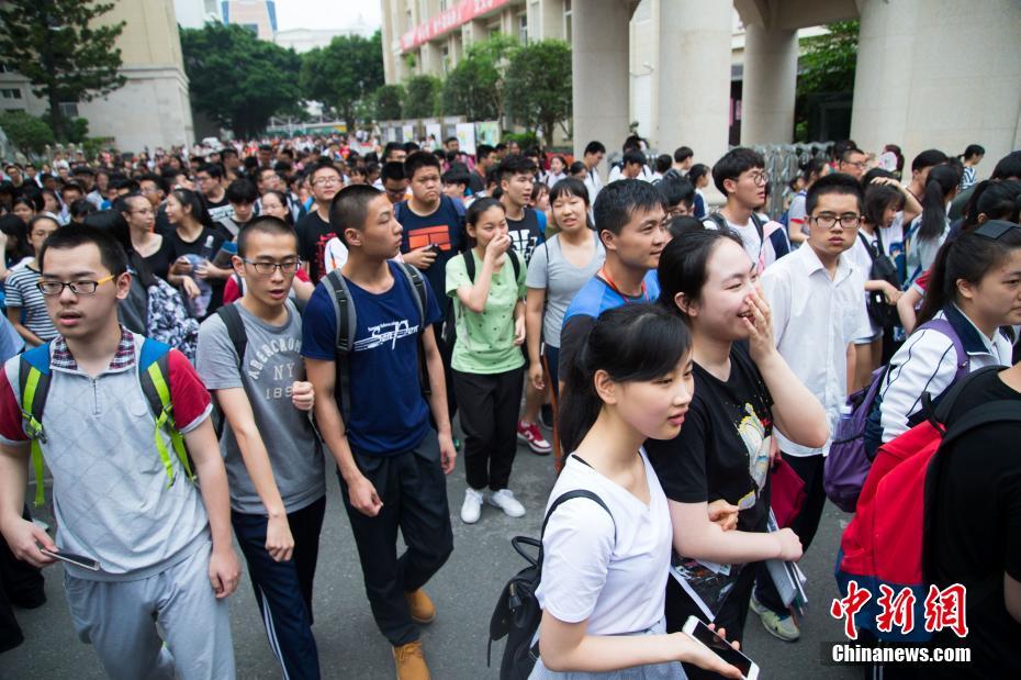 6月8日下午5时,为期两天的2017年全国统一高考落幕。福州屏东中学考点外,大批考生家长翘首等待高考最后一门考试的结束。随着考试结束铃声响起,考生门纷纷走出考场,寻找自己的亲人,第一时间与他们分享高考结束后的喜悦。图为考试结束,考生蜂拥而出。李南轩摄