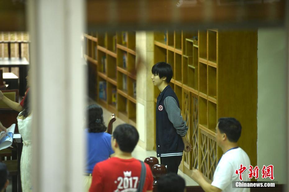 6月8日,2017年全国高考结束,TFboys成员王俊凯考试完毕后参观八中校园阅览室。陈超 摄