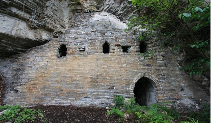 洞口是按城门的样式来修建。有1个城门,4个射箭孔。洞口很小,人要弯腰后才能进入。进洞后,一路向下。空间越来越大。