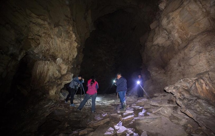 走过二三十米后,进入一个洞厅。大厅有十多米高,三四十米宽,四五十米长。村长说,以前村里遭遇战争和土匪时,整个村子数百人,都会躲进洞里。有时吃住甚至好几十天。等到战争结束,土匪离开时再出来。