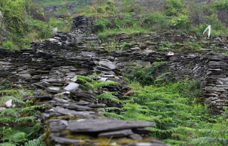 不仅仅人人洞内。天神坡坡表面,到处都是石头垒砌的”城墙“。我们以为这是以前的村庄废墟。村民说,其实这只是村民开荒后,把地里的岩石堆在地头,就成为了围墙,围墙就成为庄稼抵御野兽的屏障。在这片土地上生活,人和庄稼都必须足够顽强。
