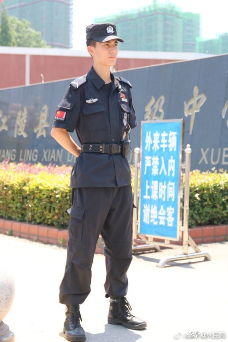 高考期间,湖北江陵一中考场外,一位执勤的特警小哥让考生们hold不住了:挺拔的身姿,帅气的形象,冷峻的气质,考生考后纷纷求合影。有网友将他的照片传上网络,被赞为“最帅护考巡特警”。