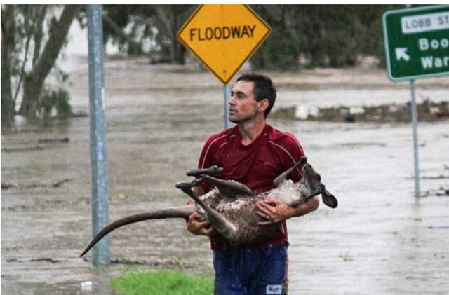 抱着袋鼠的男子