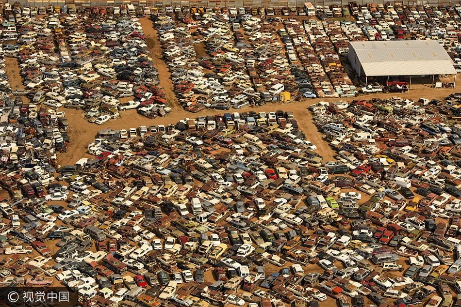 一座废品堆放场内密密麻麻的堆放着数千台无人问津的汽车,虽然它们被整齐的排成列,但是仍然不足以放下这些汽车,不得不将一些车堆放在另一些车的车顶上。