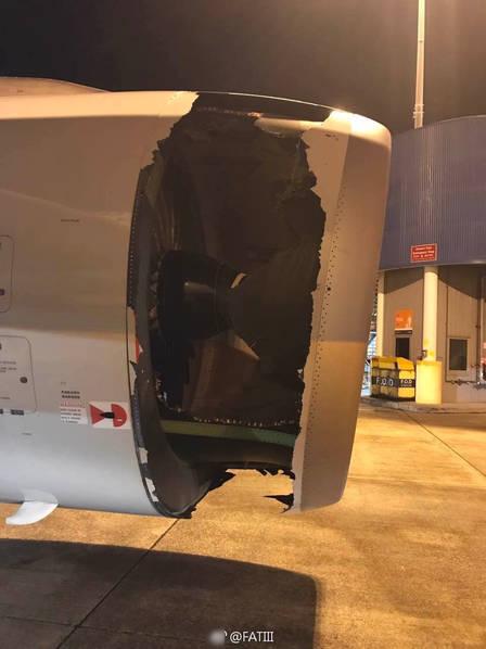 悉尼-上海的MU736飞机刚起飞引擎整流罩就炸成这样,没有人员伤亡实属大幸。据说是安全员最先发现这一情况,及时报告机组,起飞关键阶段关注机外情况,安全意识到位也算是立功。悉尼机场也派出了消防车戒备,不过飞机最终安全停靠机位,乘客需转乘次日航班。