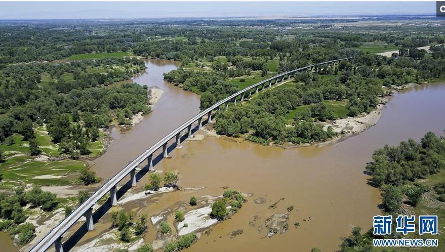 这是在新疆阿勒泰市阿苇滩镇拍摄的北(屯)阿(勒泰)铁路与216国道线的交汇处(6月10日摄)。