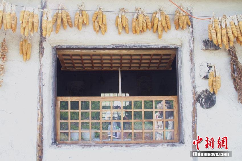 去年丰收的玉米还挂在墙外,透过古朴的木窗户,可以对屋内的景致一探究竟。 赵超 摄