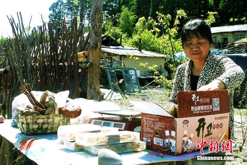 居民拿出自家种植的人身、灵芝、榛蘑在路旁兜售。前些年还是一片“屋败人稀”萧条景象的木屋村,如今正因开发旅游而渐获新生。 赵超摄
