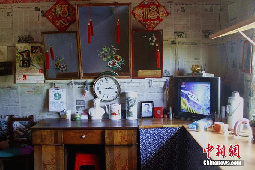 报纸糊墙,一台旧式彩电是左奶奶平时接收外界信息最常用的方式。在这里,既能了解当下,也能回顾往昔。 赵超 摄