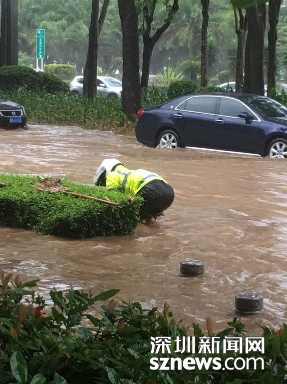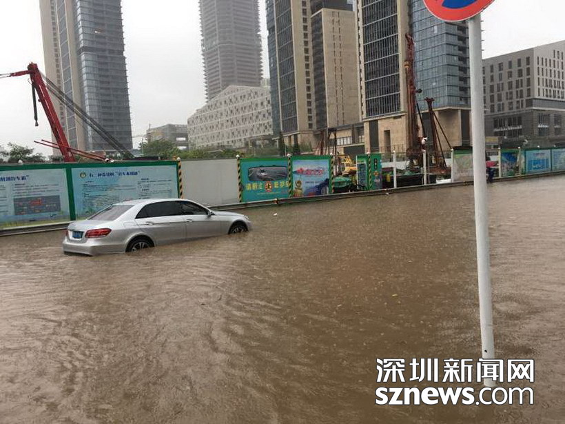 深圳强暴雨 部分地铁站点遭水淹 道路积水车辆被"浸"