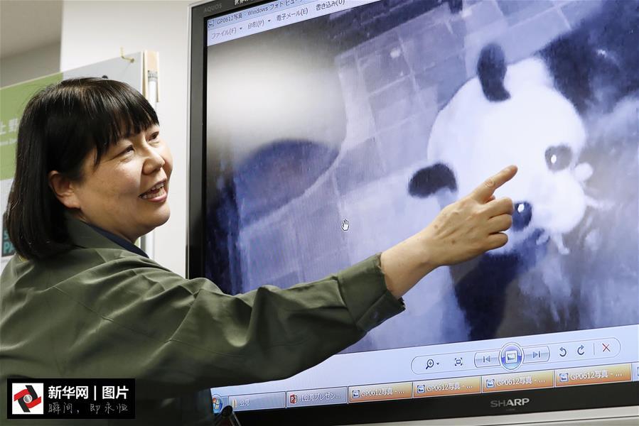 6月12日,在日本东京上野动物园,工作人员介绍大熊猫“仙女”及其幼仔的情况。日本东京上野动物园12日宣布,中国旅日雌性大熊猫“仙女”(日本名字“真真”)于当日上午产下一只幼仔,这是该动物园5年来首次有大熊猫幼仔诞生。新华社发