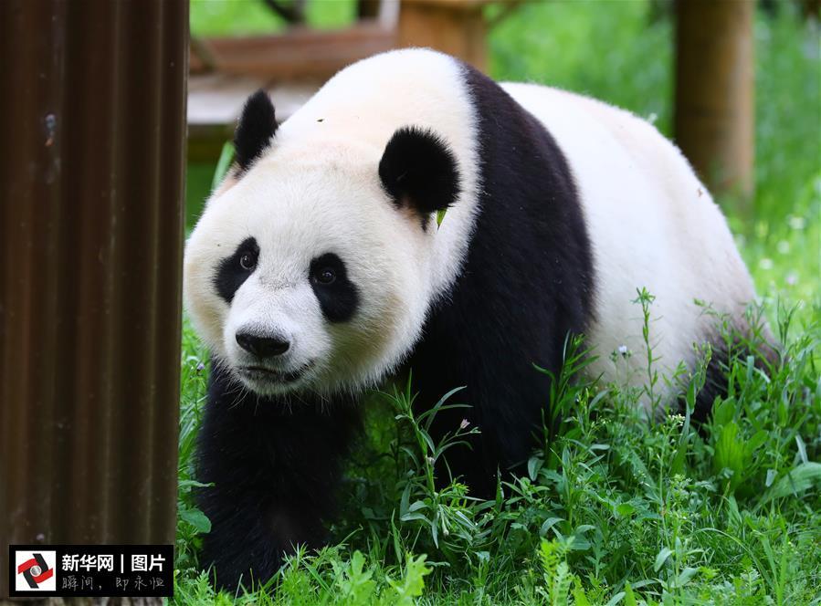 这是2017年5月30日在荷兰乌得勒支省雷嫩市的欧维汉兹动物园拍摄的大熊猫“武雯”。来自中国大熊猫保护研究中心的两只大熊猫“星雅”和“武雯”在度过一个多月的检疫期后,于5月30日首次与公众见面。新华社记者龚兵摄