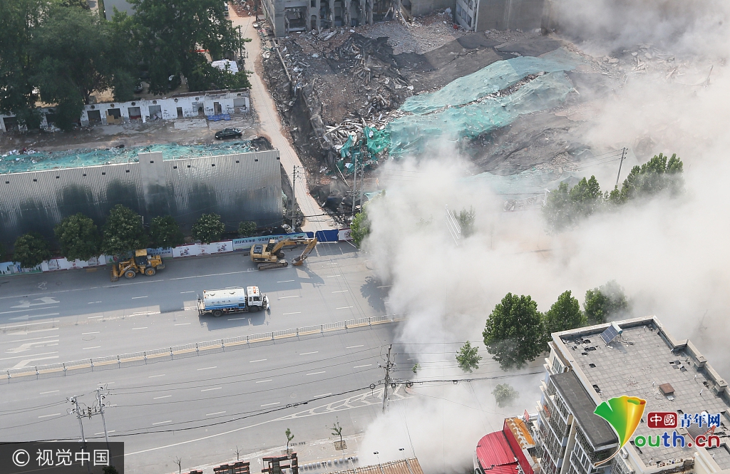 2017年6月12日下午4点,随着几声沉闷的巨响,郑州庙李村最后的6栋楼成功爆破倒塌。图为爆破前