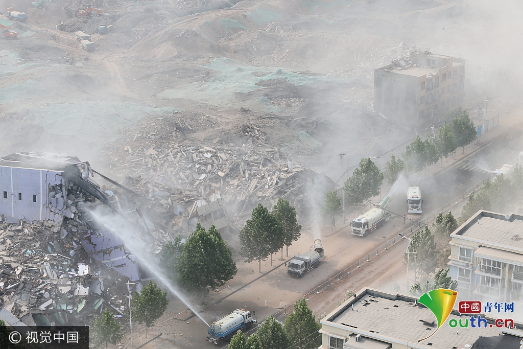为了最大程度降低粉尘,本次爆破采取清除尘源、墙体预湿、爆后降尘等综合降尘措施,最大程度控制粉尘量及扩散范围。