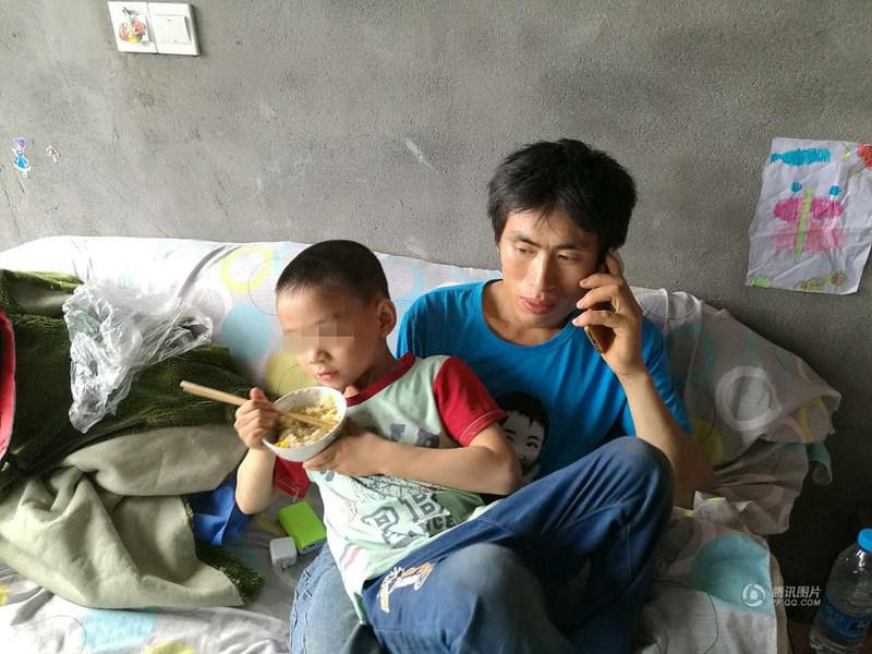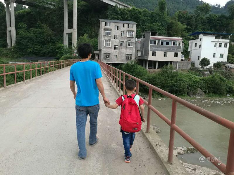 今年5月开始,他在某直播平台开通了的账号,在网上直播对望望的训练。一个月不到,粉丝就涨到5万多。如今,张禹还把“开记望仔”也做成商标。他计划,今年秋天,给望望申请一个“1680米河堤障碍快速走钢丝”的吉尼斯纪录。面对质疑,张禹说:“我何尝不想让孩子学钢琴、学舞蹈,可我没那条件”。图为张禹接儿子放学。
