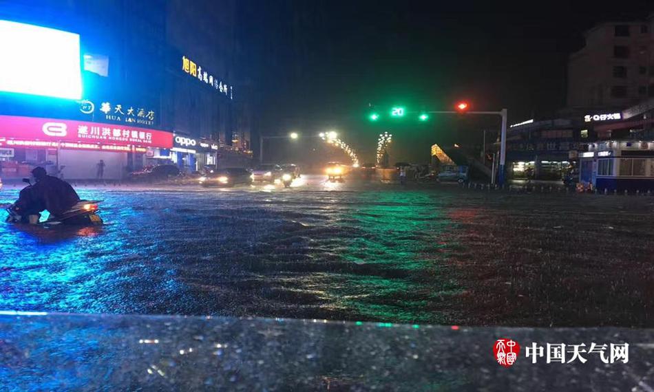 6月13日晚上,遂川县城遭暴雨袭击,此次暴雨致使县城多个路段路面变“河面”,积水比较严重。(图文/熊磊、韩啸)