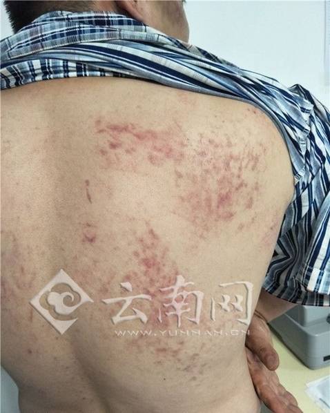 图为王先生称自己背部被擦伤。