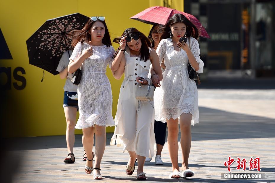 北京持续发布高温黄色预警 街头美女清凉出行