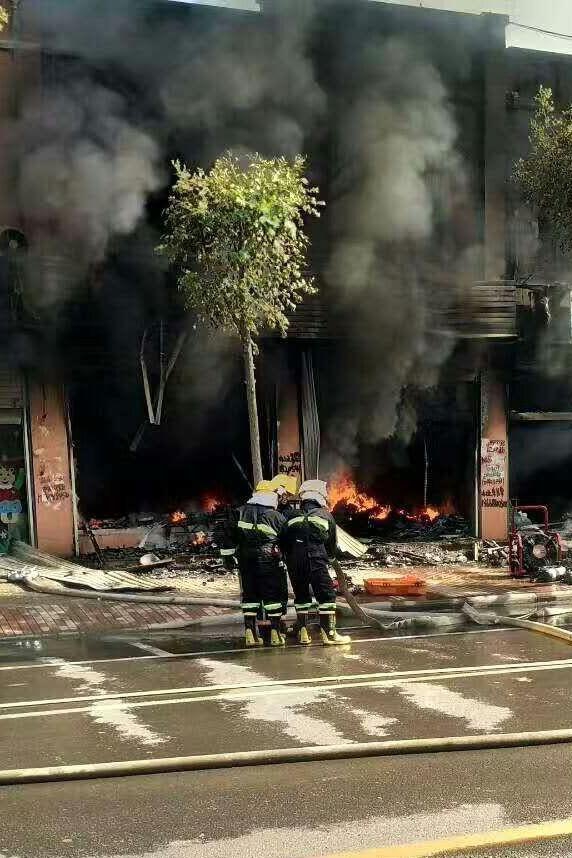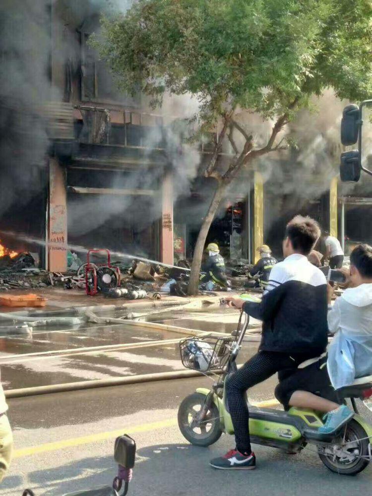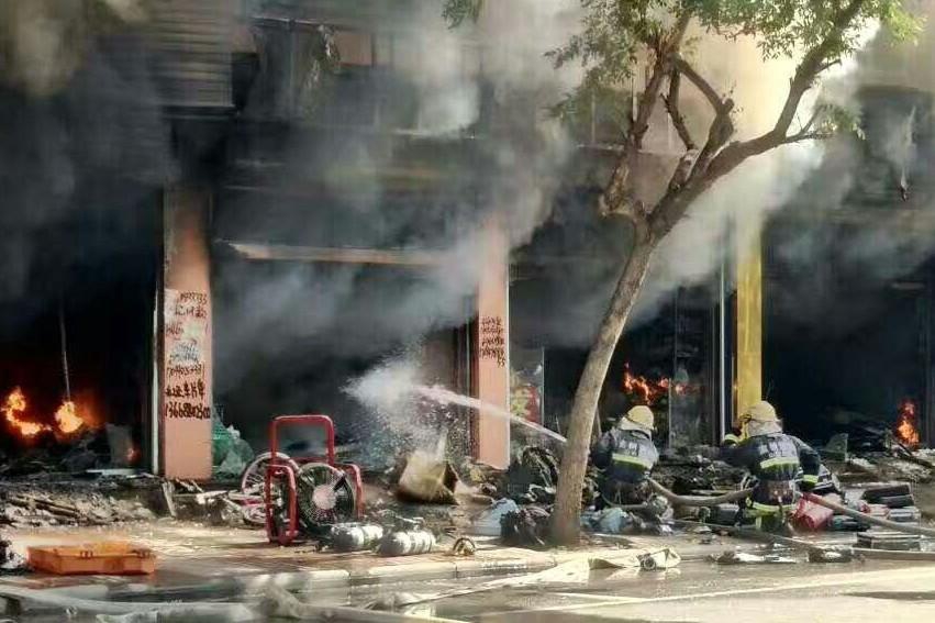 6月14日,山东惠民文安路一沿街商铺着火,接连几家商铺过火,当地消防部门紧急出动灭火。