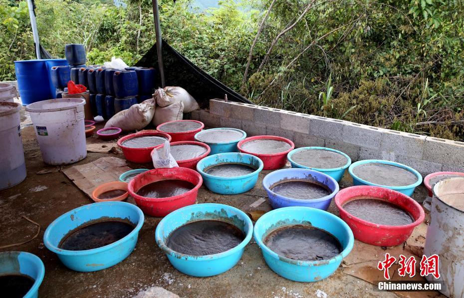 6月15日,广西河池市警方向媒体通报,当地警方成功侦破公安部督办目标特大制毒案件,摧毁一个制毒犯罪团伙,抓获犯罪嫌疑人26人,缴获制毒物品19.92吨及制毒原材料87吨。此案缴获的制毒物品及制毒原材料堪称广西公安缉毒史之最。图为三门海制毒窝点。中新社发 罗开革 摄