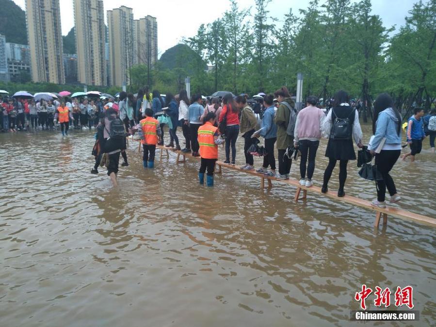 贵州高校积水 保洁阿姨背大学生“过河”引热议