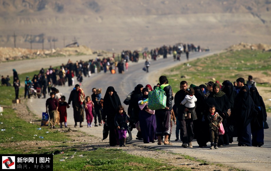 2017年3月9日,在伊拉克摩苏尔,难民逃离家园。THAIER AL-SUDANI/路透