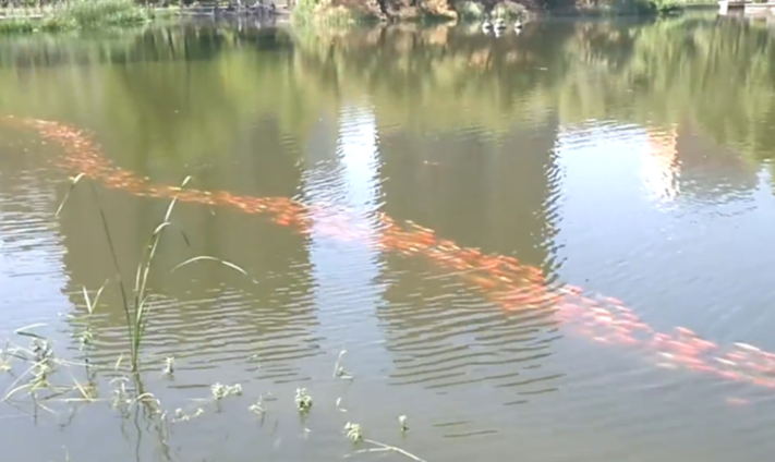 好运到?6月20日,山西太原的龙潭公园里数千条锦鲤列队向前,然后朝一个方向转圈,场面壮观,令人惊奇。一市民说,在公园活动十几年,从没见过这样的现象。