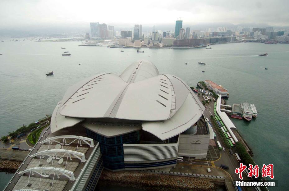 香港会展中心新翼耗资48亿港元进行第2期(通称“新翼”)扩建,将建筑面积加倍。会展2期的屋顶以4万平方呎的铝合金造成,形状像是一只飞鸟。中新社记者洪少葵 摄
