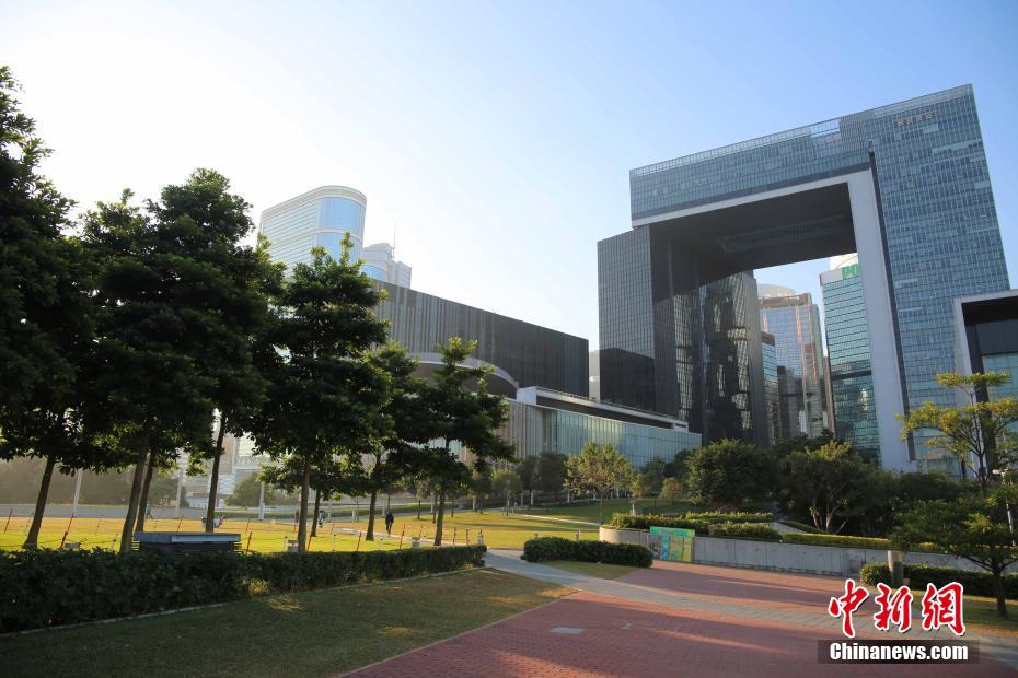 香港特区政府总部,是香港特别行政区政府总部的所在地,位于香港岛金钟添美道2号,分为东翼及西翼两座,而东翼前地是政府总部的正门。中新社记者洪少葵 摄