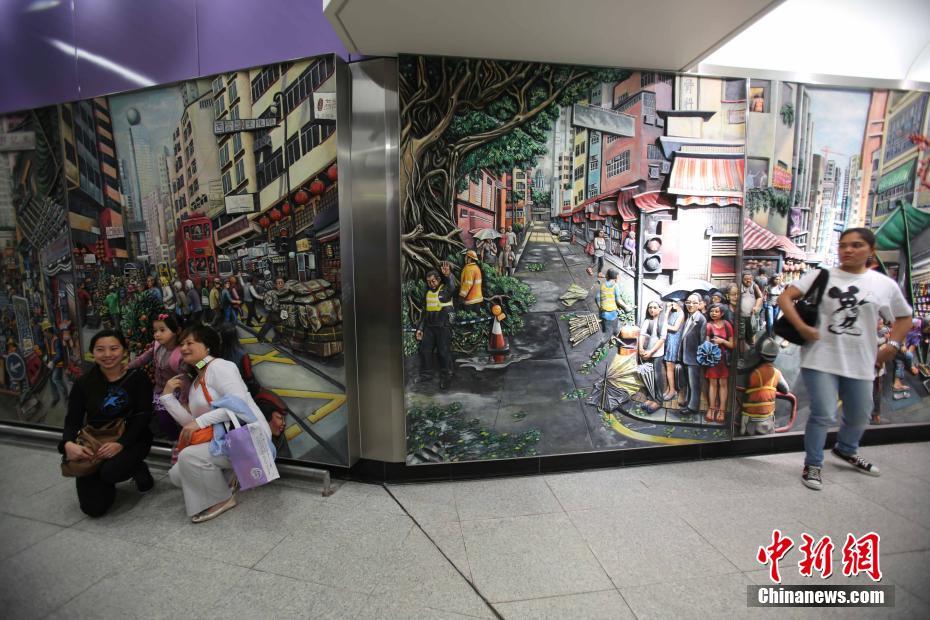 香港西营盘地铁站浮雕。西营盘站是港铁港岛线铁路站,于2015年3月29日启用。这是港铁网络内拥有最大艺术作品面积、艺术气息最浓厚的车站,站内的艺术空间达约800平方米,也是首个设有浮雕艺术品的车站。中新社记者洪少葵 摄