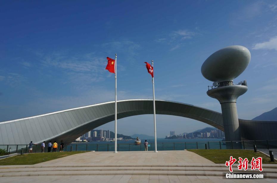 香港西九文化区,沿着木板路漫步,访客可欣赏香港独有的海港景色。中新社记者 洪少葵 摄