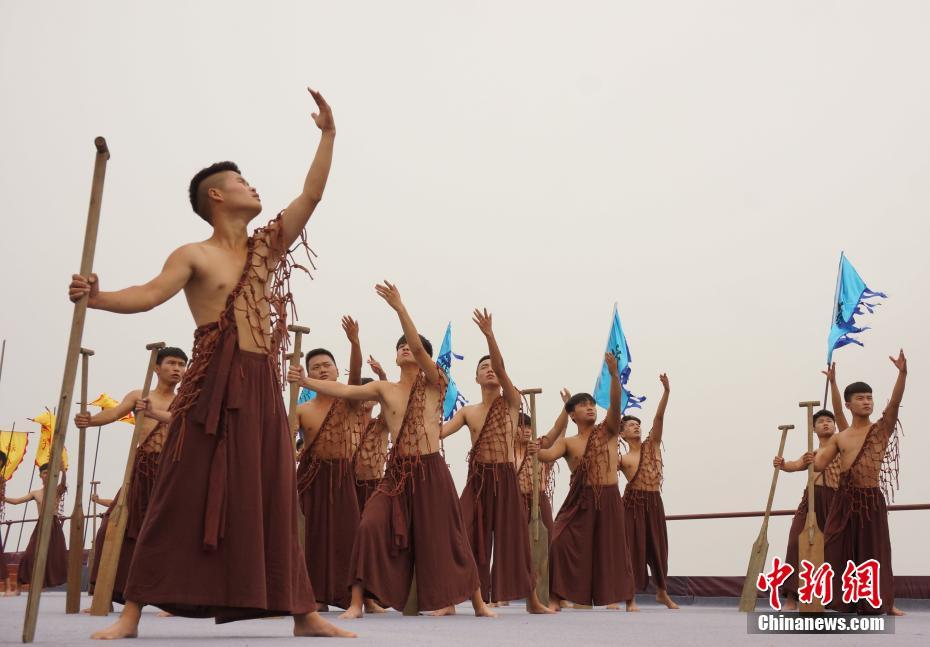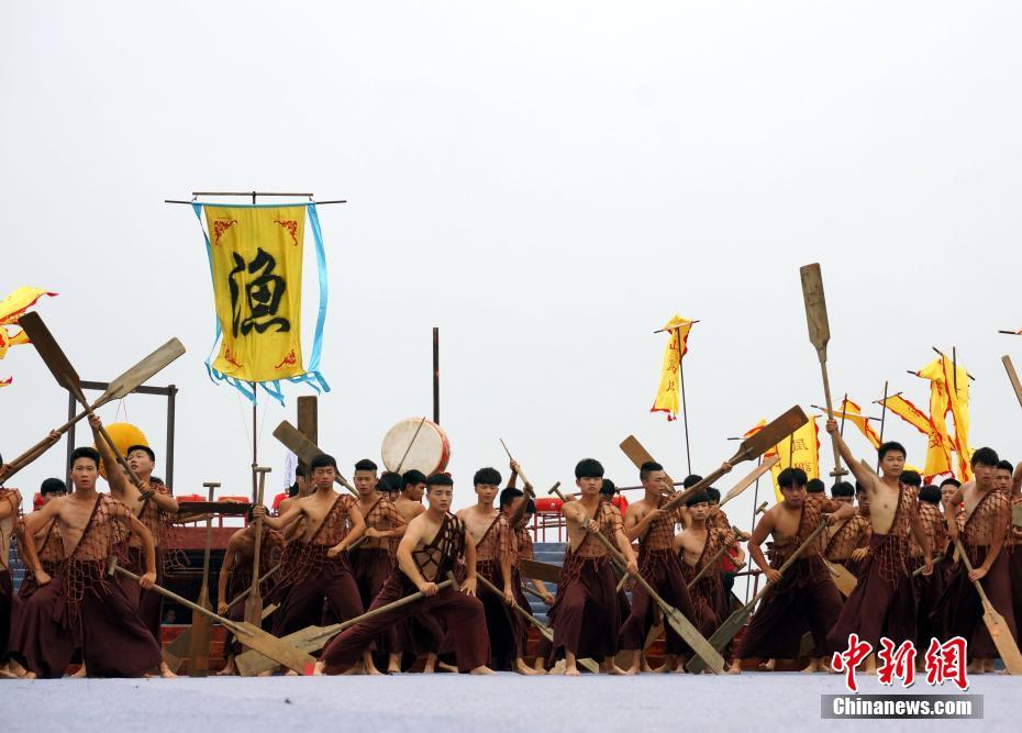 数十名渔家健儿持桨起舞。王昊阳 摄