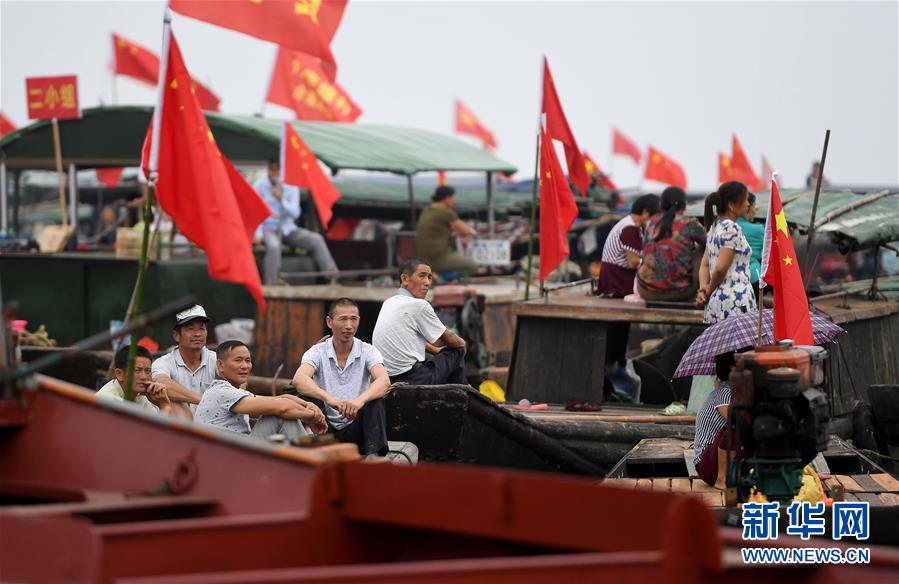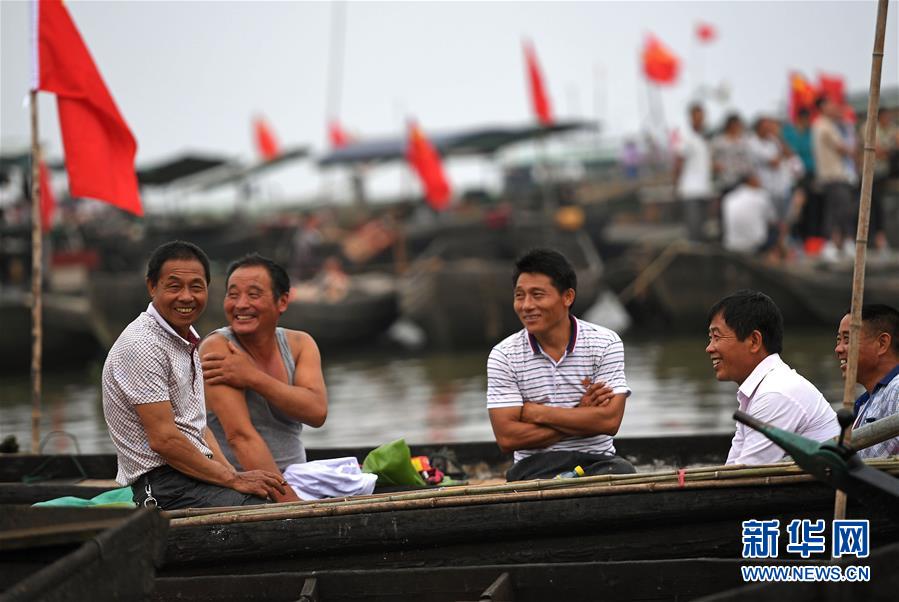 6月20日,在鄱阳湖畔江西余干县康山大堤上,传承了四百多年的渔家开港习俗再次上演。湖风中旌旗猎猎,渔家健儿高唱渔歌,拜迎鼋神,祭湖祈福,随后授旗开湖,千帆竞发,撒网开捕。“鄱阳湖开港习俗”是当地渔俗文化的传承,是渔民们对渔业兴旺的祈盼,其已成功申报为江西省第五批非物质文化遗产推荐名录。王昊阳摄