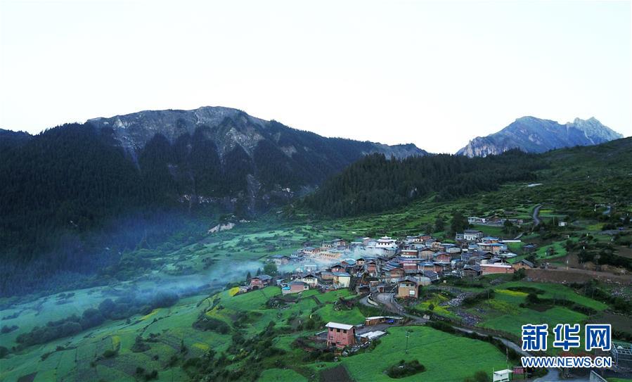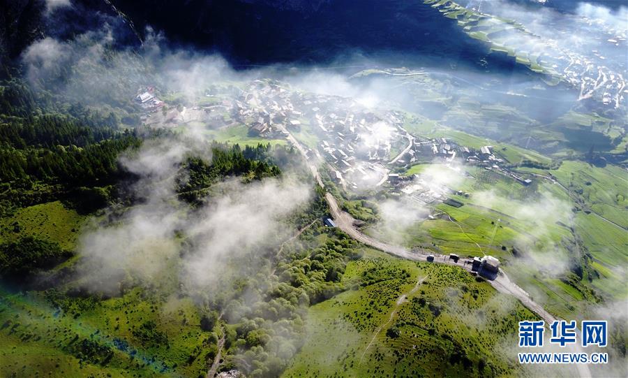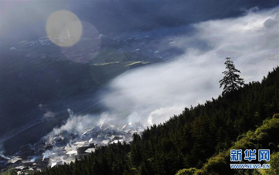 6月21日,雨后清晨的扎尕那云雾缭绕。