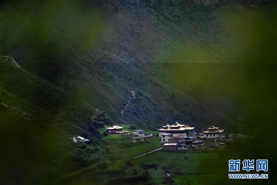 一座藏传佛教寺院掩映在扎尕那群山中(6月20日摄)。