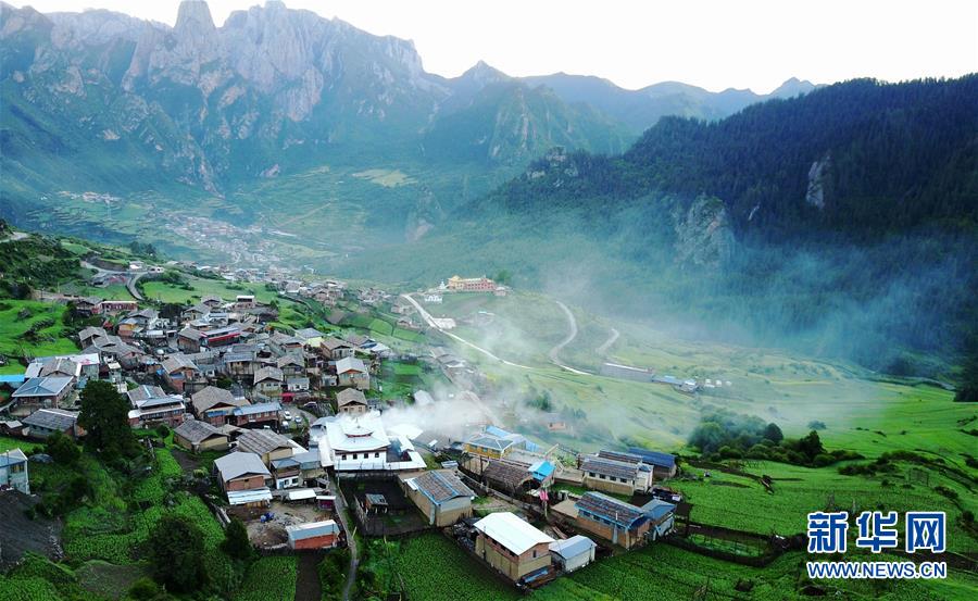 6月21日,雨后清晨的扎尕那云雾缭绕。