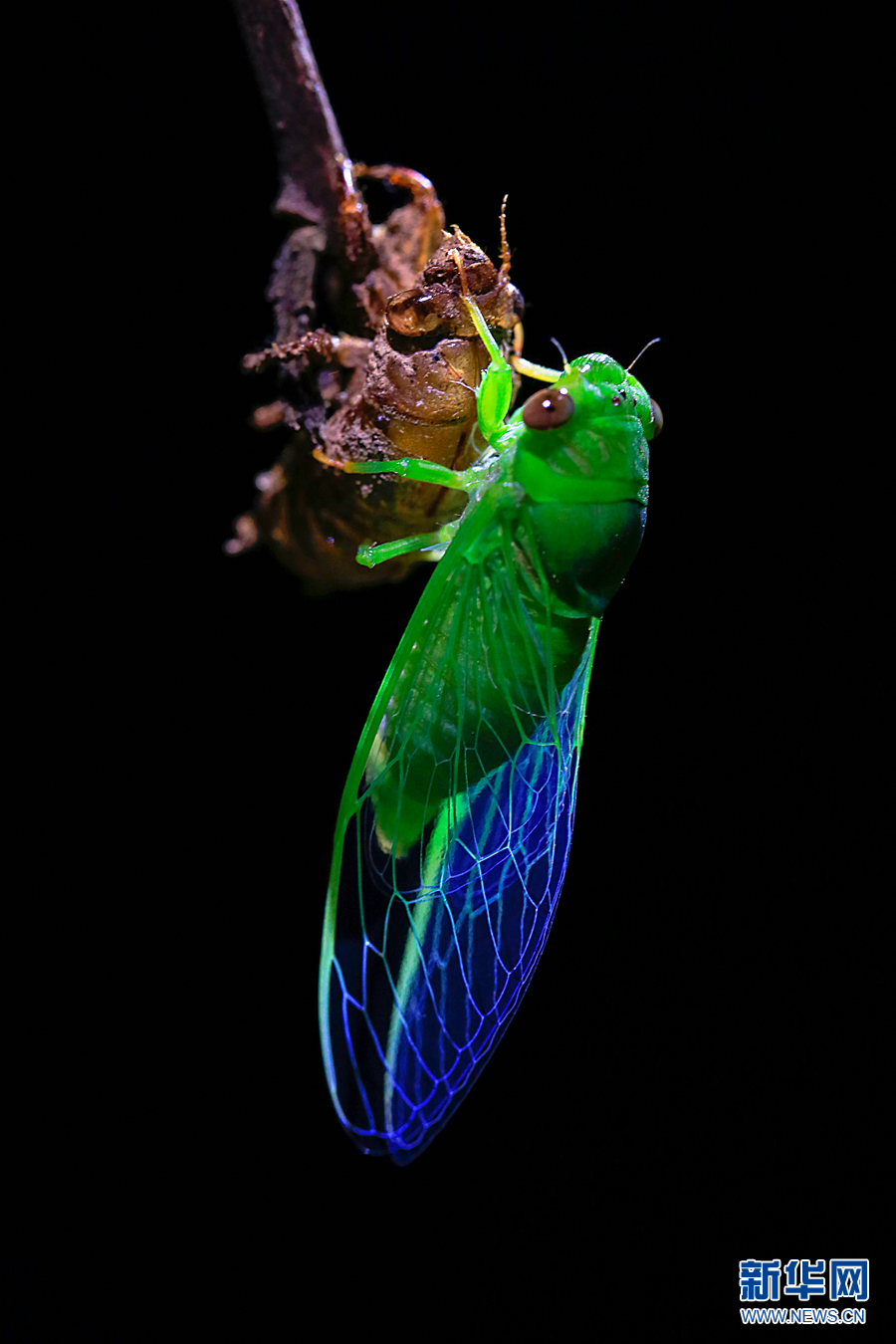 脱壳之后,蝉获得新生。新华网发(佘建新摄)